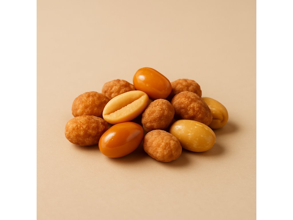Lahodný trio mix – arašídy v karamelu, cukru a medu. Sladká kombinace chutí, která potěší každého milovníka křupavého mlsání.