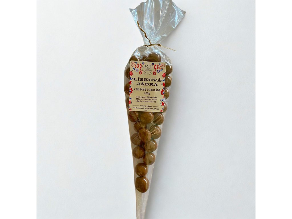 Křupavé celé lískové ořechy obalené v lahodné mléčné čokoládě – klasická kombinace, která nikdy nezklame.